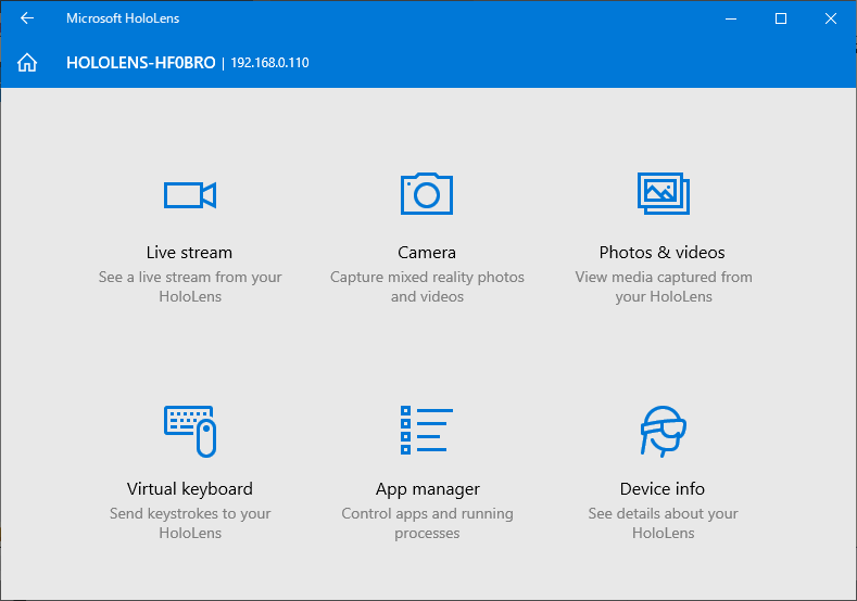 WindowsストアにあるHololensアプリをインストールすると、ポータルと同様にデバイスを制御できるが、微妙に機能が異なる。