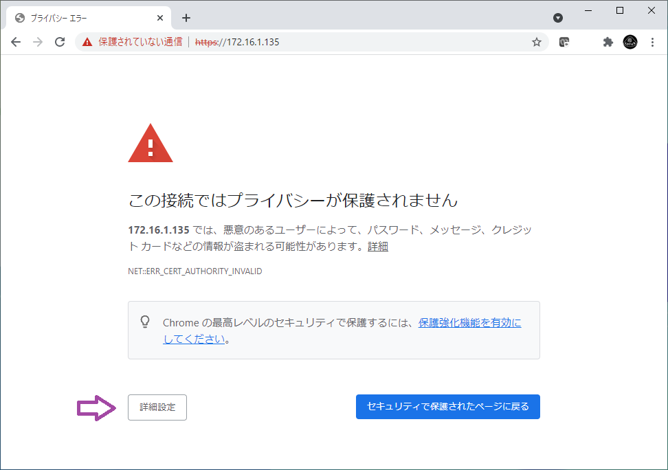 詳細設定を開き、アクセスする(安全ではありません)を選ぶ.