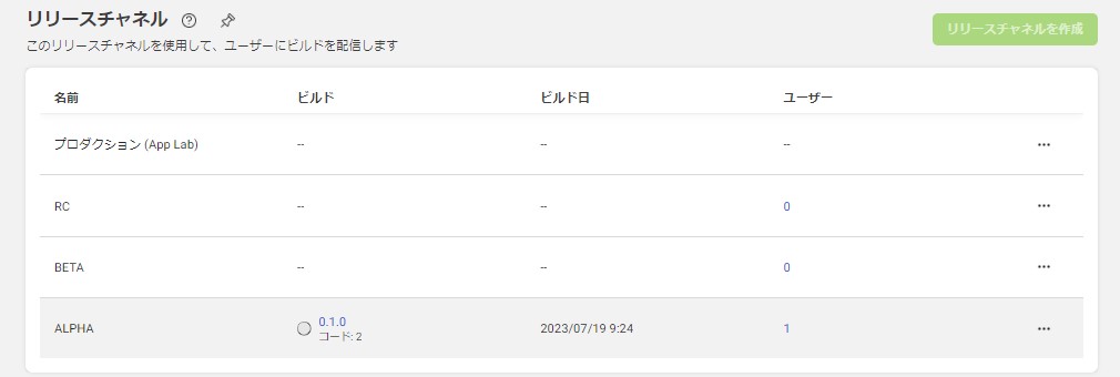 アプリマネージャー>配信>リリースチャネル