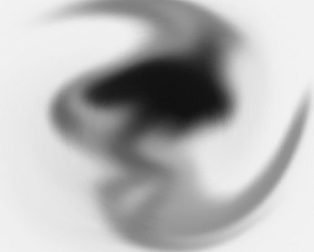 中間色グレーにすると半透明になる。複雑なものは、写真から色調処理してグレーパターンを作る方がよさそう。