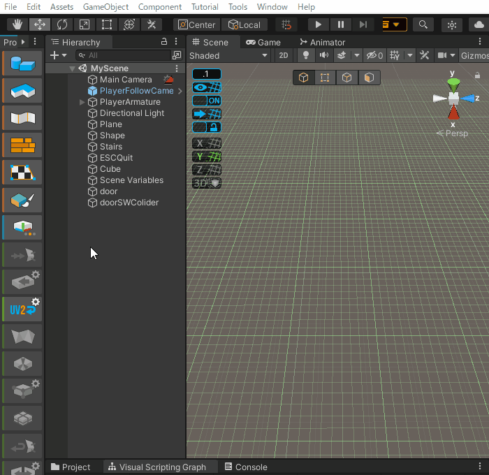 Unity Editorの中でPro Builderを使うと、プリミティブ3Dモデルを継ぎ足し、変形させながら簡易に形状を作りこむことができる。
