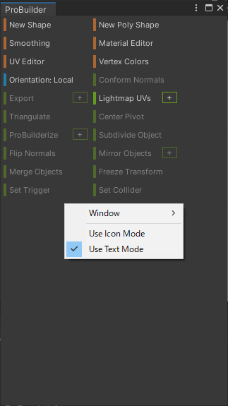 ToolsメニューのProBuilderを押すとコマンドが出てくる。