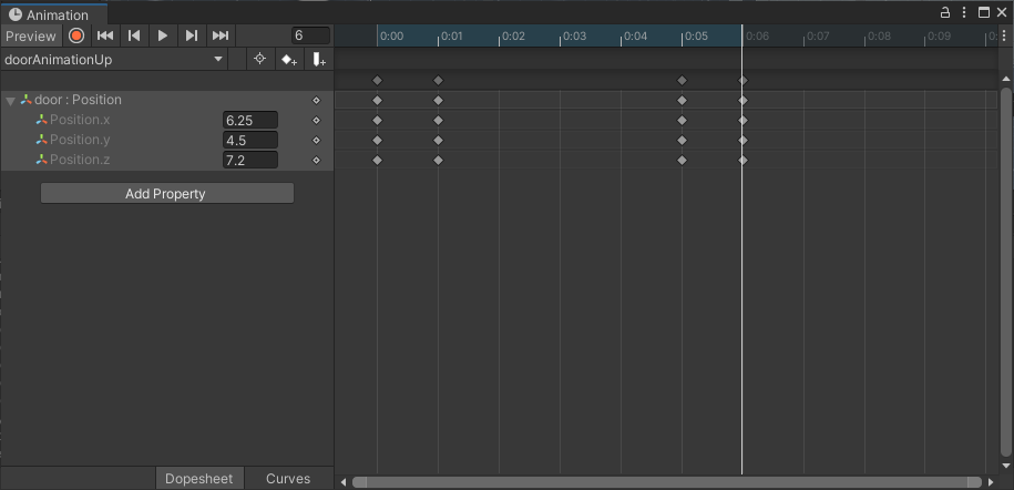 扉の開閉なら、開方向、閉方向の2つのアニメーションクリップを作成する。