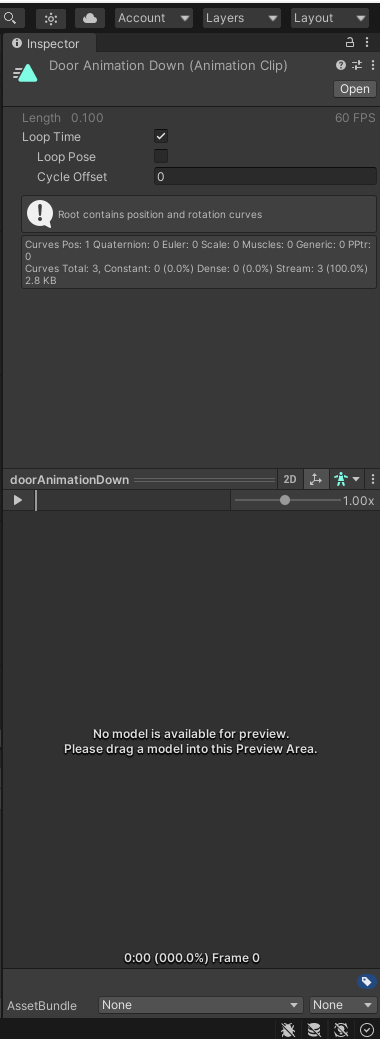 ドアの開・閉2つのアニメーションクリップを消した場合はAssetsからドラッグドロップして入れておく。