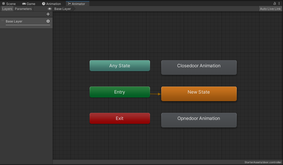 新しくNewStateを作成し、Entryからの既定のトランジションを受けるようにする。
