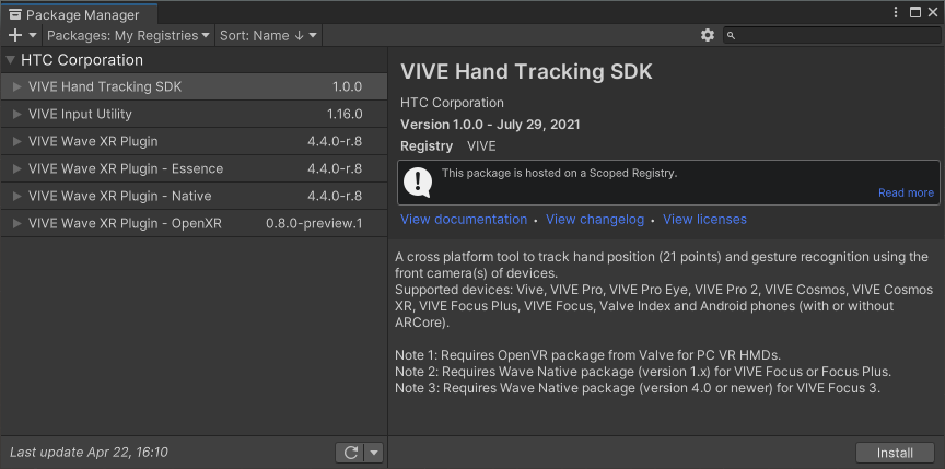 VIVE パッケージのインポート