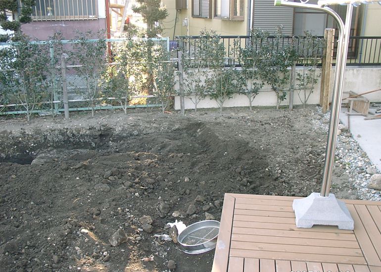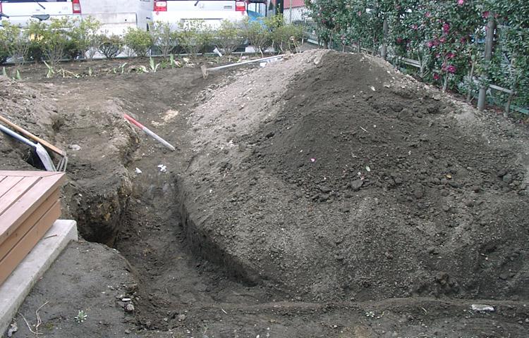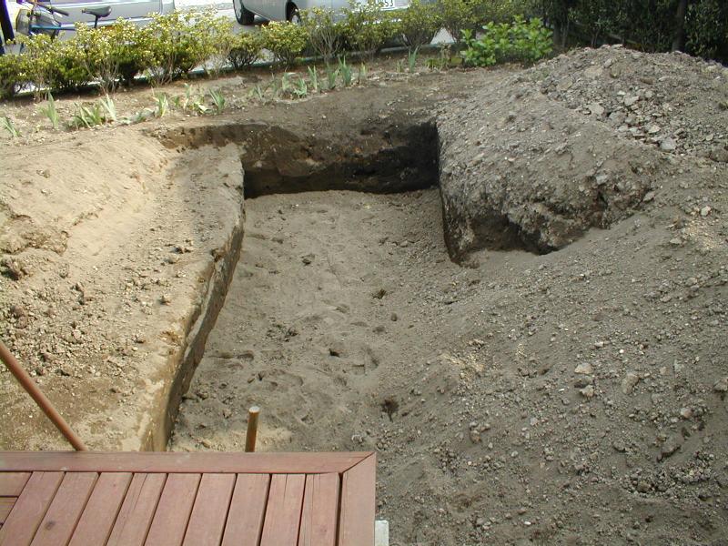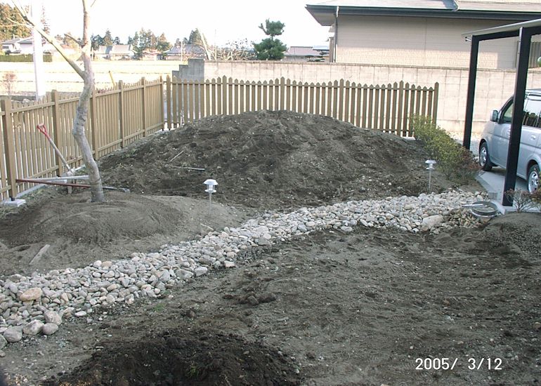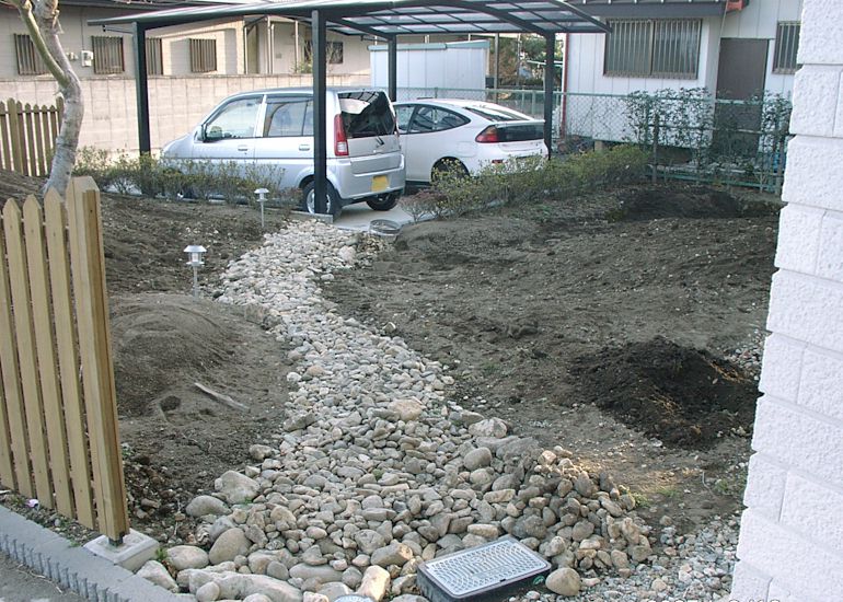 置き場に困るほど大量に石が出たため、並べて道を作った。